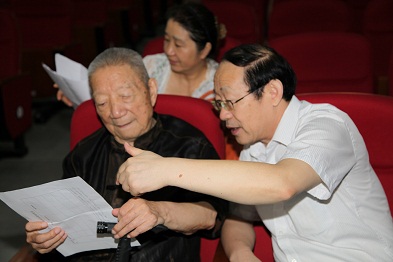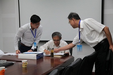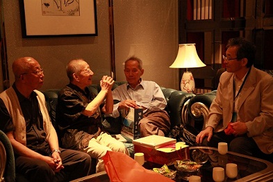 从左到右依次为费振刚先生、夏传才先生、向熹先生、田中和夫先生