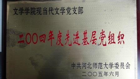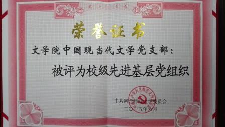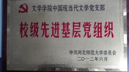 现当代文学支部近年来在教学和科研方面都举行了可喜的成绩,先后有郭宝亮、胡景敏、高艳芝等多位党员获得各类教学名师、各级先进工作者、优秀党员等荣誉,郭宝亮、胡景敏、王勇、康鑫、李静、李建周、高媛媛等先后获得国家社科基金项目资助,多人获得河北省社会科学优秀成果奖二、三等奖。李浩老师先后获得《山东文学》2018年度诗歌奖、第四届林斤澜“优秀短篇小说家”奖、《广西文学》2018年度散文奖等国内创作类奖项,并多次参加社会公益或志愿服务活动。本支部教师2014年以来出版著作20余部,发表核心期刊以上论文60余篇。2012年、2015年、2018年三次被评为校级先进基层党组织。