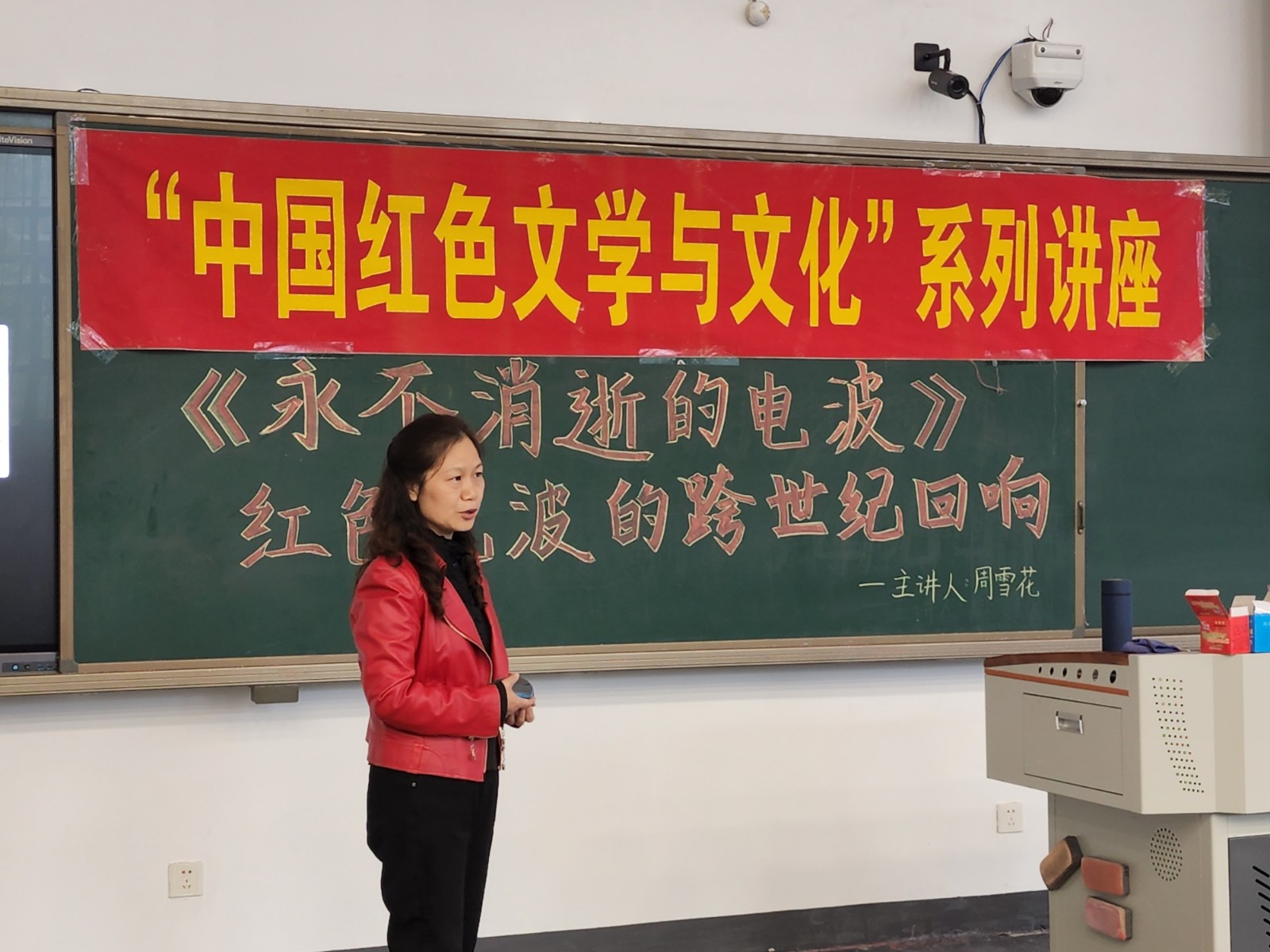 5月12日,伟德国际victor·1946源自“中国红色文学与文化”系列讲座第七讲《<永不消逝的电波>——红色电波的跨世纪回响》在公共教学楼B座110顺利举办。本次讲座由现当代文学教研室副教授周雪花老师主讲,现当代文学党支部书记王勇教授主持,学院党委负责人徐书景、党委副书记张艳、教师代表以及2021级本科生200余人参加了讲座。