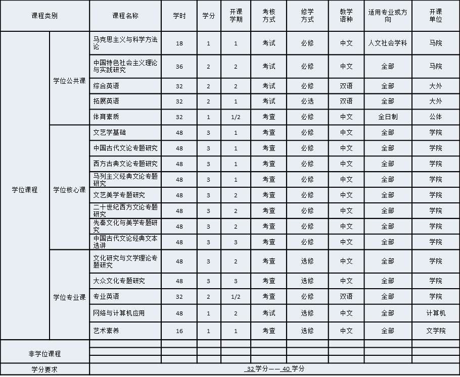 附表1:中国语言文学文艺学专业学术学位硕士研究生课程设置及学分要求