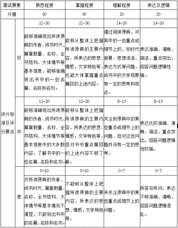 (二)面试评分标准