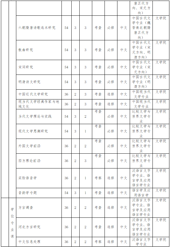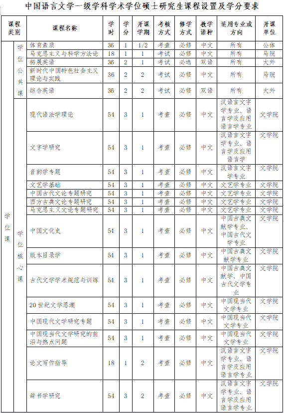 2024年修订:中国语言文学一级学科硕士研究生培养方案