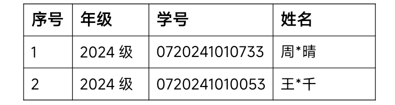 以下2名2024级继续教育在籍同学至今未提交毕业论文选题,故无法分配论文指导教师。请于2026年2月14日前电话联系继续教育秘书李光辉老师(电话:18813042067),如在截止日期前未能与本院取得联系,将不再安排论文指导教师,将严重影响个人论文成绩乃至学位申请和毕业,由此引发的一切后果由学生个人承担。。